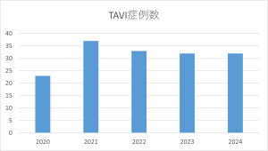 なお現在単純な大動脈弁置換の多くを、数センチの皮膚切開で行うMICS手術で行っています。経カテーテル的大動脈弁植え込み術(TAVI、TAVR)は2015年2月に施設認定を取得し、軌道に乗っています。