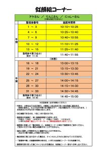 ・「整理券不要」の描画時間帯の受付は、いずれも似顔絵コーナーでの先着順です。
