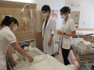 患者さんが安全・安楽に療養生活が送れるよう多職種で協働しながら、チーム一丸となって看護を実践しています。ベッドサイドケアを大切にし、患者さんの個別性に合わせた看護が提供できるように心がけています。